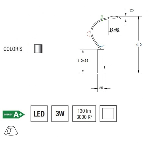 Sienas lampa Snake ļauj ideāli virzīt gaismu atbilstoši vēlmēm. Šī LED sienas lampa ar elastīgu kātu un slēdzi uz stiprinājuma ir regulējama augstumā. Iekļauts 5 W un 130 lm LED modulis. Gaismeklis ir izgatavots no matēta birstēta alumīnija un polikarbonāta.