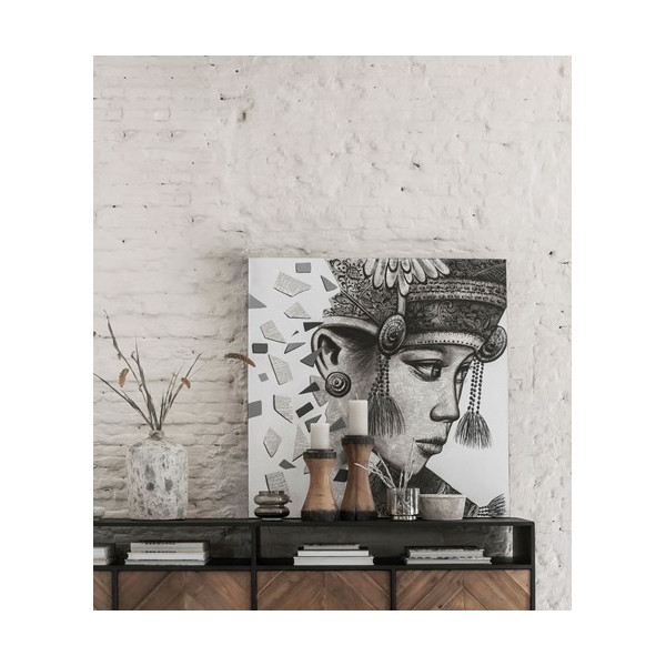ŠīBali Ketut sienas māksla Must Living pauž autentisku holandiešu dzīvesveidu. Šajā audeklā attēlota Bali sieviete, kas valkā tradicionālos rotaslietas no Bali salas. Tā izmērs ir 100x100 cm un krāsa melnā un baltā krāsā. Šī audekla glezna piebilst vairāk dekoru pie sienas dzīvojamā istabā.