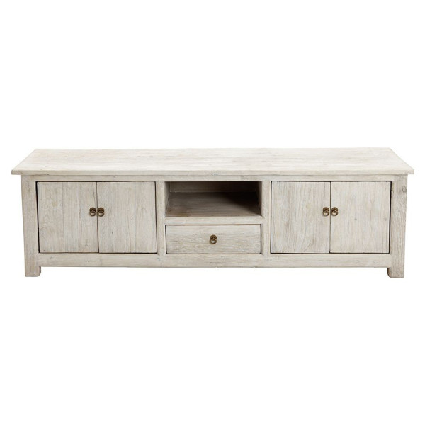 Tamperes TV statīvs ir izturīgs un estētiski pievilcīgs gabals, kas izgatavots no pārstrādātas gobas. Tā gaišā krāsa un apdare ļauj detaļām un koka graudu bagātībai spīdēt, veicinot tās zemniecisko un autentisko šarmu. Cietā struktūra balstās uz koka kājām, kas akcentē tās tradicionālo stilu. Elegantajā 180x45x60 cm skapī ir vairāki nodalījumi un atvilktnes, kas piedāvā plašu un praktisku vietu multimediju iekārtām un citām vajadzībām. Lai to uzturētu, pietiek ar sausu drānu, kas vienkāršo apkopi, vienlaikus saglabājot koksnes izskatu un kvalitāti.
