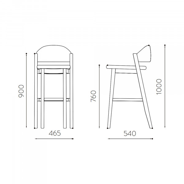 De Caravela barkruk heeft een massief eikenhouten frame. Hij is uitgerust met een rugleuning en een zitting die bekleed zijn met een stof die in een breed scala aan opties kan worden gepersonaliseerd. Deze barkruk is een origineel product van de ontwerper Gonçalo Campos. De afmetingen zijn 46,5x57x100 cm met een zithoogte van 76 cm.