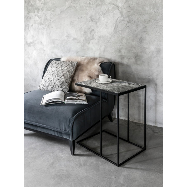 De laptoptafel Graphic by MUST Living meet 53x38x63 cm en heeft een zwart metalen frame. Het grafische patroon op hars past perfect in eigentijdse interieurs.