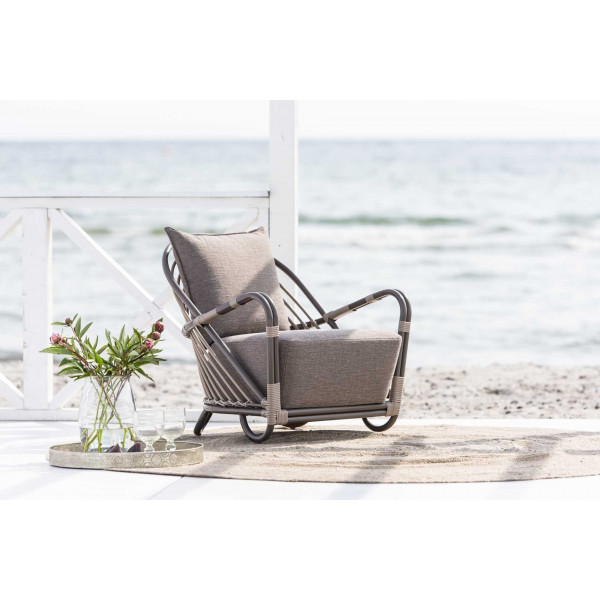 De onafhankelijke stijl en de originele vorm van de Charlottenborg Outdoor fauteuil nodigen uit tot rust op een terras of in de tuin. Deze buitenfauteuil meet 73x81x49 cm, met een zithoogte van 39 cm.