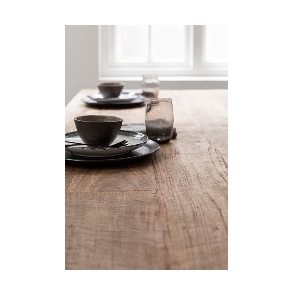 De rechthoekige Metropole eettafel is gemaakt van gerecycled teakhout en bevat taps toelopende poten in de vorm van een boemerang. Het wordt gekenmerkt door drie verschillende afmetingen. De natuurlijke kleur en het ontwerp geven de eetkamer een mooie uitstraling en elegantie.
