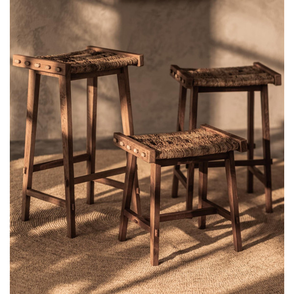 Caterpillar is een veelzijdige kruk, gemaakt van sterke, duurzame abacavezels en gecertificeerd teruggewonnen teakhout. Met zijn handgeweven abaca-blad en het stevige houten frame kan hij zowel als zitplaats als als decoratief object worden gebruikt. Deze duurzame en milieuvriendelijke kruk is een prachtige toevoeging aan je huis. Het meet 45x36x48 cm.