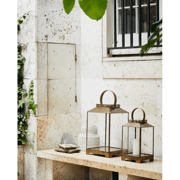 Deze lantaarn is perfect voor buitengebruik met zijn elegante gouden afwerking. Volledig met de hand gemaakt in messing met alle kanten in glas met een antieke afwerking. Het kan aan één kant worden geopend en gesloten om kaarsen toe te voegen. Deze lantaarn is verkrijgbaar in twee verschillende maten.