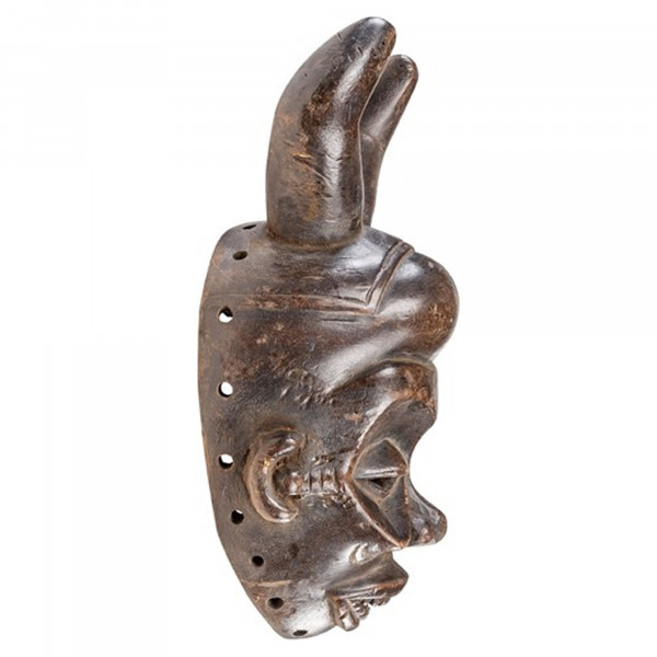 Deze Bene Lulua wandkunstcollectie van Versmissen combineert een ongewone en speelse esthetiek en biedt antiek etnisch design in een interieur. Dit masker is gemaakt van hout met een zeer glanzend bruinzwart oppervlak. Het dateert uit het midden van de 20e eeuw en van oorsprong DR Congo zou een symbool zijn geweest van mannelijke macht en een hoogwaardigheidsbekleder genaamd „Migone”. Hij heeft een afmeting van 12,5x16,5x31 cm.