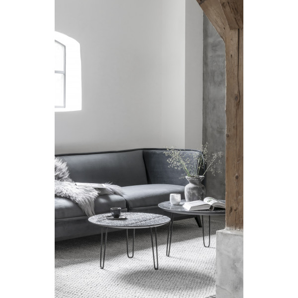 Het motief van de MUST Living Tribal salontafel is geïnspireerd op de tatoeages van inheemse stammen. De tafel is verkrijgbaar in drie afmetingen. De poten zijn van zwart metaal. Het bovenblad van hars verbetert het comfort.