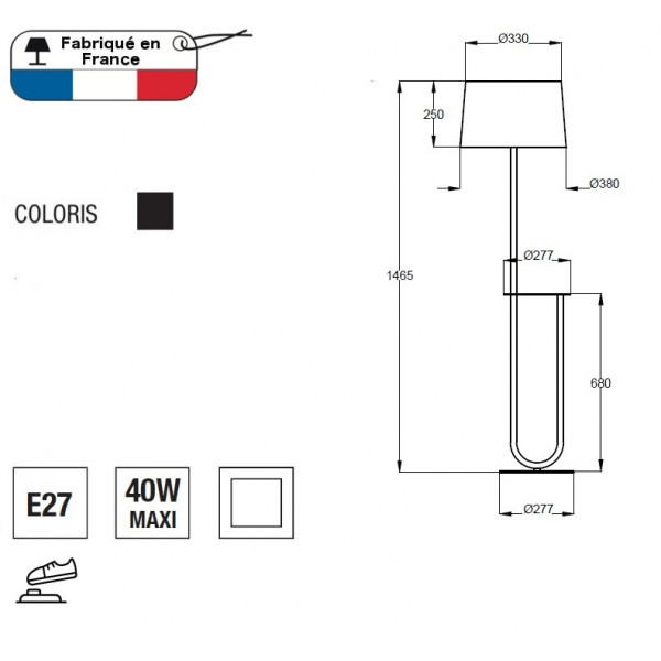 De ronde en harmonieuze lijnen van de vloerlamp Duo combineren functionaliteit met decoratie dankzij het mooie tafeltje. De zwarte lampenkap biedt een zachte en subtiele verlichting voor een geheel dat rust uitstraalt. De vloerlamp is gemaakt van geschilderd metaal met een zwarte chintz lampenkap en tafeltje. Het product is vervaardigd in Frankrijk. Het heeft een E27-fitting en wordt geleverd zonder gloeilamp. Het is samengesteld uit epoxy gelakt staal en gelamineerde stof.