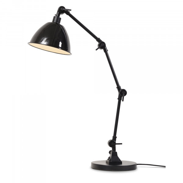 De tafellamp Amsterdam met geëmailleerde lampenkap past gemakkelijk in een leeshoek of op een bureau. Verstelbaar, heeft hij een hoogte van 43 tot 110 cm, een breedte van 25 tot 125 cm en een basis van 25 cm x 2,5 cm. Deze prachtige lamp heeft een E27-fitting (lamp niet inbegrepen).