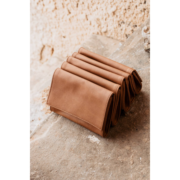 De Minimal portefeuille is met de hand gemaakt van een gladde en zachte stof van hoge kwaliteit. Het kan 6 kaarten bevatten, heeft een ritsvak voor alle essentiële spullen en een mobiele telefoon.