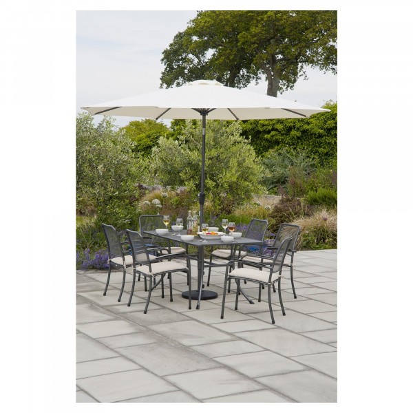 Deze rechthoekige tafel Portofino van Alexander Rose is aangenaam voor 6 personen. Het is extra comfortabel dankzij de specifieke kenmerken van het materiaal van de basis en de stalen bak beschermd tegen roest. Dit meubel is zowel binnen als buiten functioneel. Met een afmeting van 140x90x74 cm en kleuren in antracietgrijs geeft deze high-end tafel een eenvoudige en elegante uitstraling.