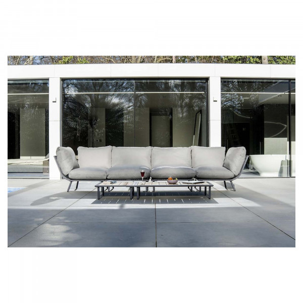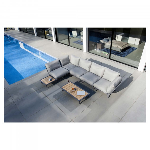 Het assortiment hoekmodules van Alexander Rose Beach is uitstekend geschikt voor in de woonkamer. Veelzijdig, het kan ook zowel buiten- als binnenmeubilair zijn. Deze hoekmodule met aluminium structuur is verkrijgbaar met verschillende kussenkleuren die waterdicht zijn. Hij heeft een afmeting van 97x97x62 cm.