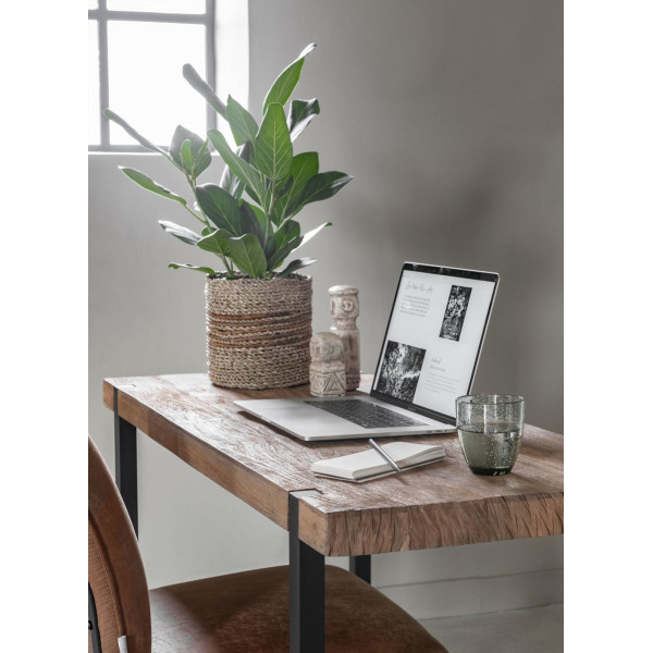 Ręcznie wykonane z litego drewna tekowego z recyklingu i metalowych ram, biurko Beam przetrwa próbę czasu, oferując autentyczny i uspokajający styl na czas pracy. Jego wymiary to 120x50x76 cm. Drewno z kolekcji Beam jest wybierane ze względu na swoje unikalne właściwości i starannie obrabiane. Pęknięcia, ślady i inne nieregularności są częścią jego uroku i nadają mu autentyczny i poszukiwany charakter.