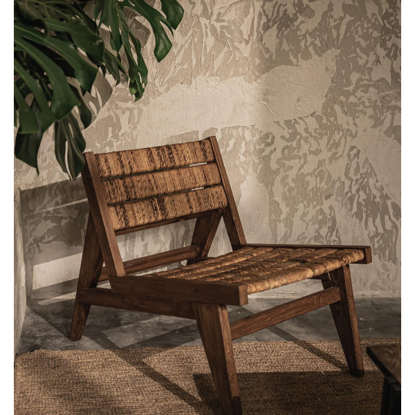 Krzesło wypoczynkowe Caterpillar Brawny jest zarówno rustykalne, jak i nowoczesne, o kultowym wyglądzie. Wykonany ręcznie przez lokalnych rzemieślników z połączenia ręcznie tkanej abaki i odzyskanego drewna tekowego, ten wysokiej jakości fotel pięknie łączy tradycyjne materiały z nowoczesnymi kształtami. O wymiarach 56x78x64,5 cm jest idealny do relaksu
