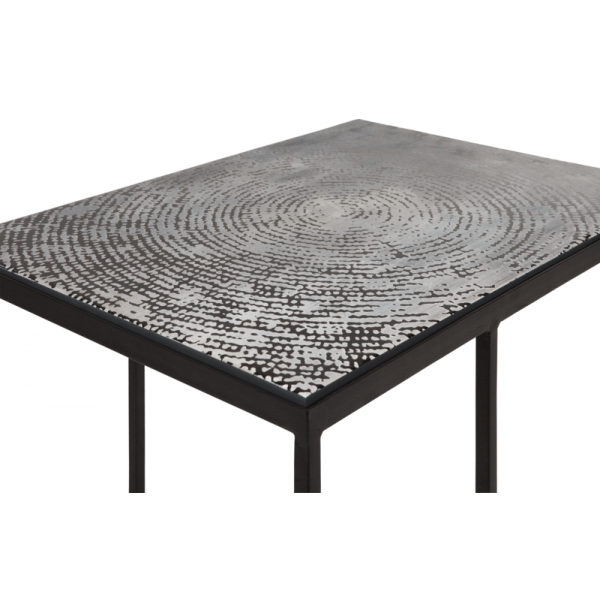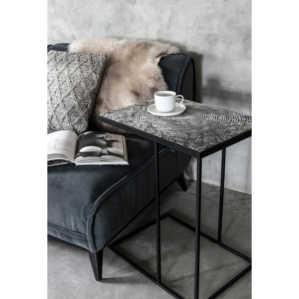 Stolik na laptopa Graphic by MUST Living ma wymiary 53x38x63 cm i posiada konstrukcję z czarnego metalu. Graficzny wzór na żywicy doskonale wpasowuje się w nowoczesne wnętrza.