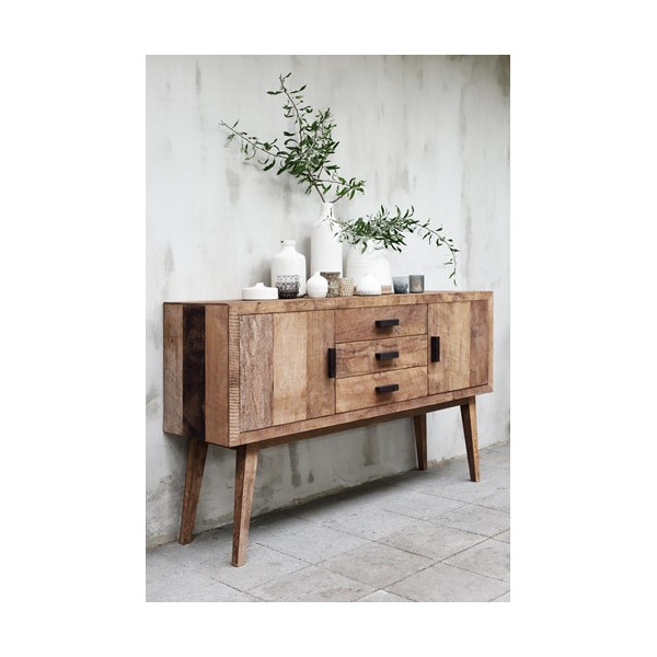Kredens z recyklingowanego drewna tekowego, 2 drzwi, 3 szuflady.