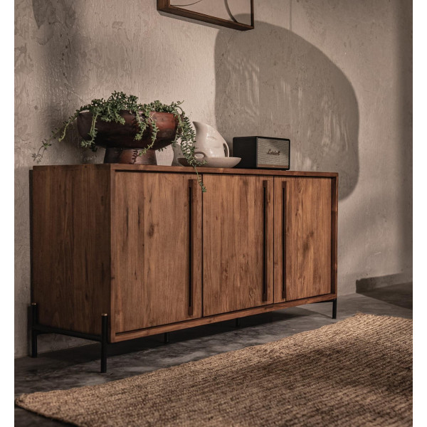 Ten kredens Outline to elegancki mebel o czystym designie i starannym wykończeniu. Wykonany z odzyskanego drewna tekowego i wyposażony w żelazne nogi, z łatwością wkomponuje się w każdy styl wnętrza. Trzy przestronne przegródki są wyposażone w wyjmowane półki, aby zaspokoić wszystkie Twoje potrzeby związane z przechowywaniem. Komoda Outline o wymiarach 148x42,5x70 cm to imponujący mebel, który wniesie odrobinę uroku i ciepła do dekoracji.