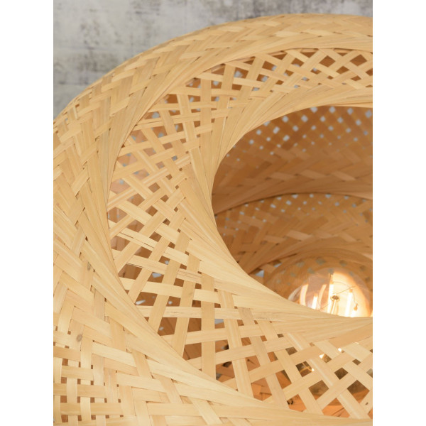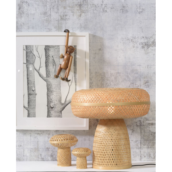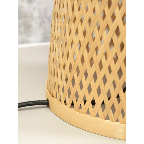 Lampa stołowa Palawan natychmiast uwodzi oryginalnością swojego projektu. Łącząc żelazo i bambus, wnosi urok i urok do dekoracji wnętrz. Charakteryzuje się długością 40 cm, wysokością 40 cm i rozmiarem podstawy 40 cm x 40 cm. Ta oprawa ma podstawę E27 (żarówka nie wchodzi w zakres dostawy).