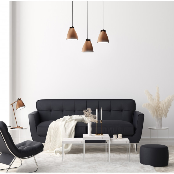 Oryginalność stylu i formy jest zapewniona dzięki lampie wiszącej Clarelle S. Jej industrialny wygląd pozwoli jej znaleźć miejsce zarówno w biurze, jak i w nowoczesnym wnętrzu. Każde źródło światła jest regulowane na wysokość podczas instalacji. Jest produkowana we Francji. Posiada 3 gniazda E27 (żarówki nie są dołączone). Składa się z malowanego metalu epoksydowego i barwionego drewna.