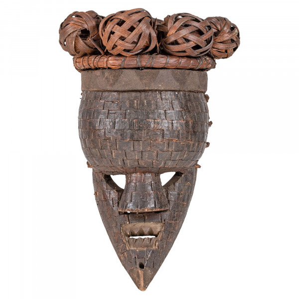 Abyozdobić ściany wewnętrzne, ta wspaniała maska Mukinka AAA271 jest ultra artystyczna antyczna i etniczna. Maska wykonana jest w całości z naturalnego drewna o wymiarach 21x22,5x33 cm. Ta ozdoba Versmissena jest wyjątkowa w oryginalności Zairu plemienia Salampasu randki z XX wieku. Ta maska jest noszona podczas ceremonii z kopułowym czołem zwieńczonym plecionym cierniem wierzby.
