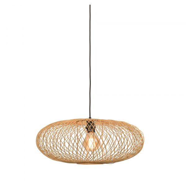 Wykonana z bambusa lampa sufitowa Cango jest oprawą, która musi dodać odrobinę elegancji i nowoczesności do pokoju. Charakteryzuje się szerokością 60 cm, wysokością 27 cm, a także rozmiarem podstawy 12 cm średnicy i grubością 2,5 cm. Ma abażur o średnicy 60 cm, którego wysokość wynosi 25 cm. Ta oprawa ma podstawę E27 (żarówka nie wchodzi w zakres dostawy).