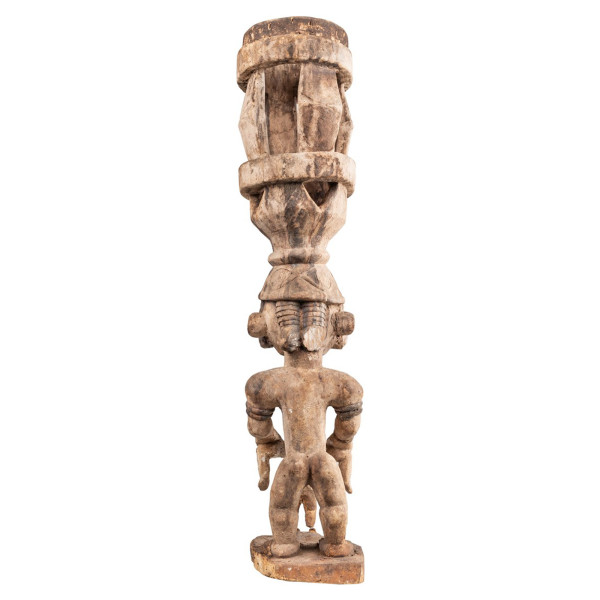 Igbo to rzeźba z Nigerii, pochodząca z połowy XX wieku, o wymiarach 28x24,5x111 cm. Praca przedstawia antropomorficzną postać niosącą na ramionach inną mniejszą postać, tworzącą totem dwóch postaci. Styl jest charakterystyczny dla sztuki Igbo, ze szczegółowymi rysami twarzy i ciała wyrzeźbionymi w drewnie. Wyraz twarzy jest spokojny, a postawy postaci demonstrują doskonałe rzemiosło. Ten złożony, warstwowy utwór ujawnia kulturowe wierzenia i praktyki ludów Igbo.