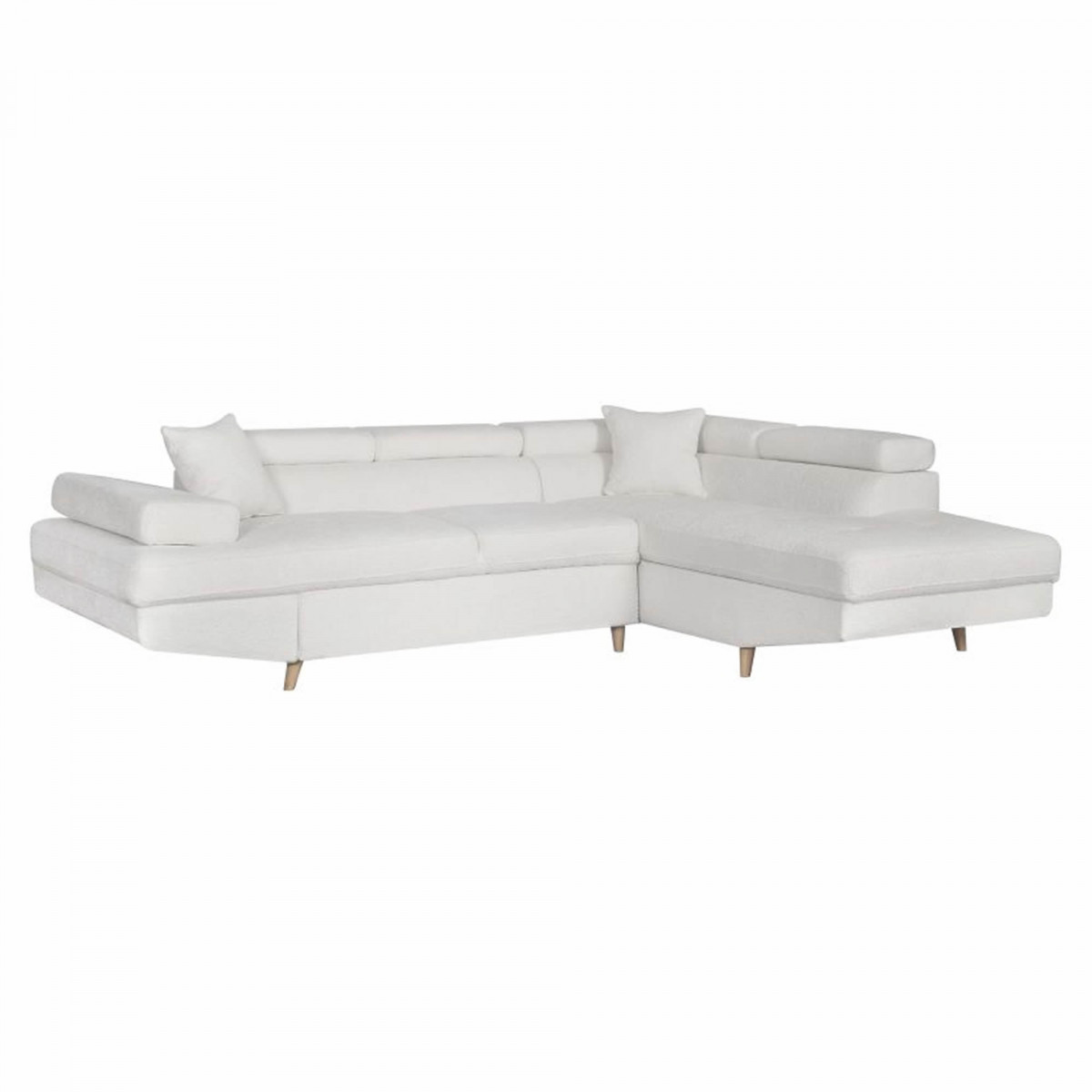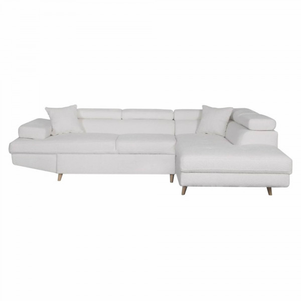 Ta prosta sofa Rio Scandinave to prawdziwy atut dekoracyjny dla eleganckiego wnętrza. Ta narożna sofa ma wiele funkcji jako kabriolet i dodatkowe łóżko dla 2 osób z bagażnikiem, aby zoptymalizować przechowywanie. Ta 5-osobowa sofa oferuje miękki i przyjemny dotyk dzięki tapicerce z tkaniny z efektem pętli w połączeniu z jasną drewnianą podstawą i wyposażoną w poduszki w tonie. Ta biała narożna sofa w stylu nordyckim oferuje najwyższą i wyjątkową, pięknie zdobiąc wnętrze o wymiarach równych 192x271x70/85 cm.