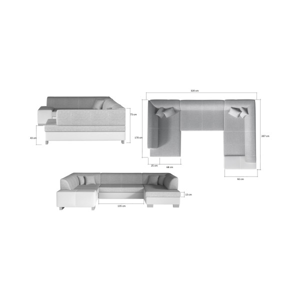 Ta narożna sofa Hawana wprowadzi wyrafinowany styl do pokoju. Tkanina użyta do jego produkcji oraz plastikowe nóżki sprawiają, że jest solidny i estetyczny. Posiada wbudowaną dekoracyjną poduszkę, która doda idealnego akcentu, aby stworzyć komfortowe wrażenia w pomieszczeniu. Jest dostępny w kilku asortymentach tkanin Eltap. Sofa Havana ma całkowite wymiary 320x167/207x73 cm i wysokość siedziska 43 cm i można ją przekształcić w wygodne łóżko o szerokości 240 x 125 cm.