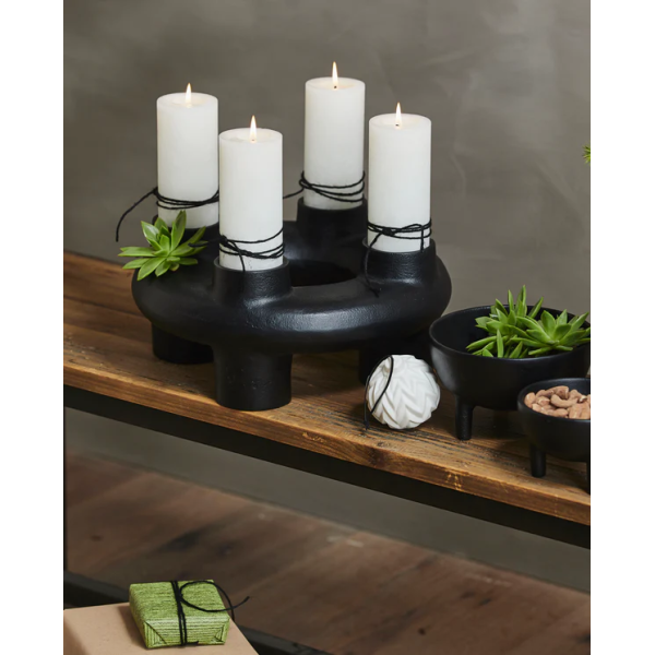 Elegancki i minimalistyczny świecznik Senja ma czysty design, który przyniesie trzeźwy i klasyczny styl na stół. Dzięki aluminiowemu materiałowi ma naprawdę autentyczny wygląd. Może pomieścić do czterech świec. Ten świecznik mierzy ø38x47 cm.