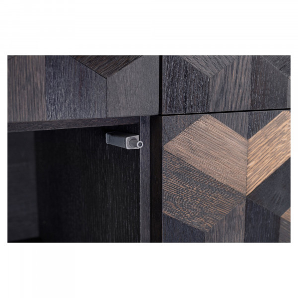 Do przechowywania rzeczy ta szafka iluzyjna jest dobrym pomysłem na pokój. Ze swoim rozmiarem 45x111x168 cm i naturalnym i czarnym kolorem. Współczesny i niepowtarzalny styl dopasuje się do układu pomieszczenia. Ta stalowa szafka z korpusem MDF i parkietem dębowym nada wnętrzu atmosferę i dekoracyjny wygląd.