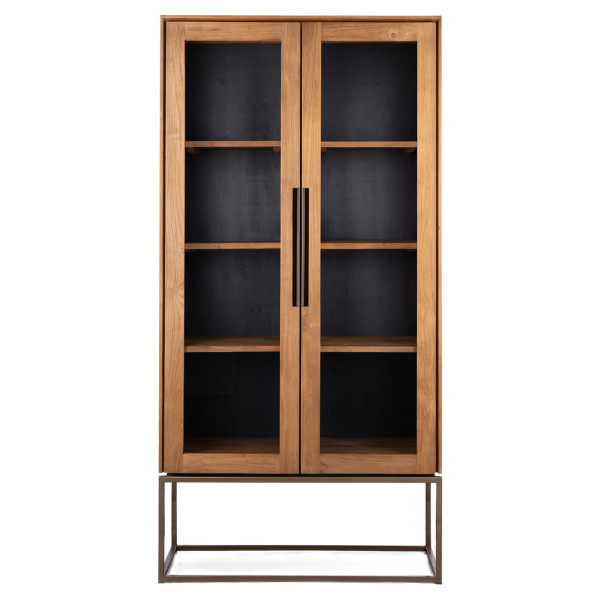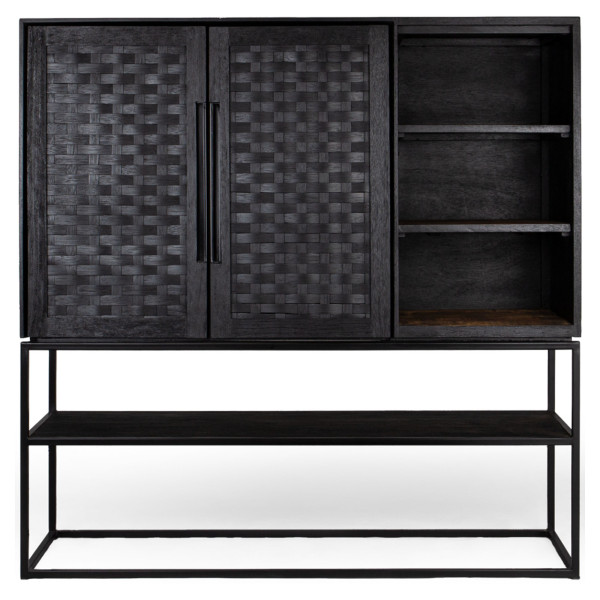 Szafa Karma to ręcznie wykonany mebel wykonany z odzyskanego drewna tekowego, z dwoma ręcznie tkanymi drzwiami z drewna tekowego i otwartą komorą. Jego żelazna rama jest wykończona wspaniałym matowym efektem mosiądzu, oferując klasyczny i wyrafinowany wygląd. Elegancko skonstruowane drzwi kryją w środku sześć wyjmowanych półek, dzięki czemu Twoje rzeczy są doskonale zorganizowane. Urządzenie mierzy 95x45x165 cm.