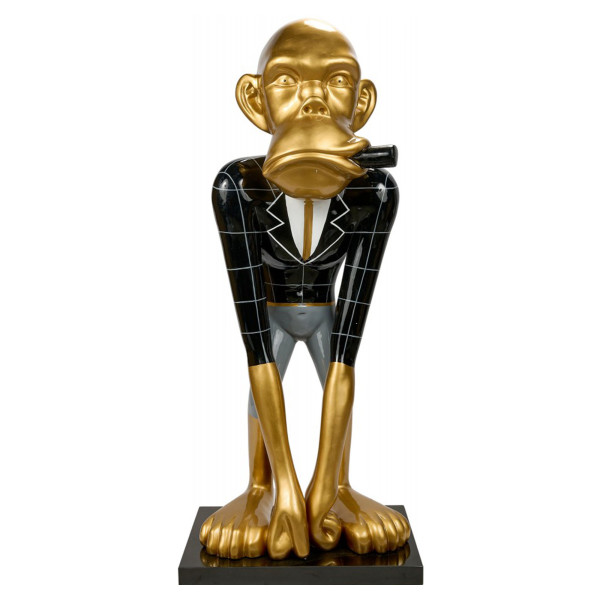 A escultura “Bill Majordome” da marca Flosia é uma peça decorativa original que representa um grande macaco vestido com um terno e uma gravata borboleta, segurando um charuto em uma das mãos. Esta escultura é feita de resina, o que a torna forte e durável. Ele é colocado em uma base preta resistente que permite que seja facilmente colocado em uma superfície plana. Medindo 140 cm de altura, esta peça impressionante é ideal para adicionar personalidade e estilo a qualquer espaço de vida.