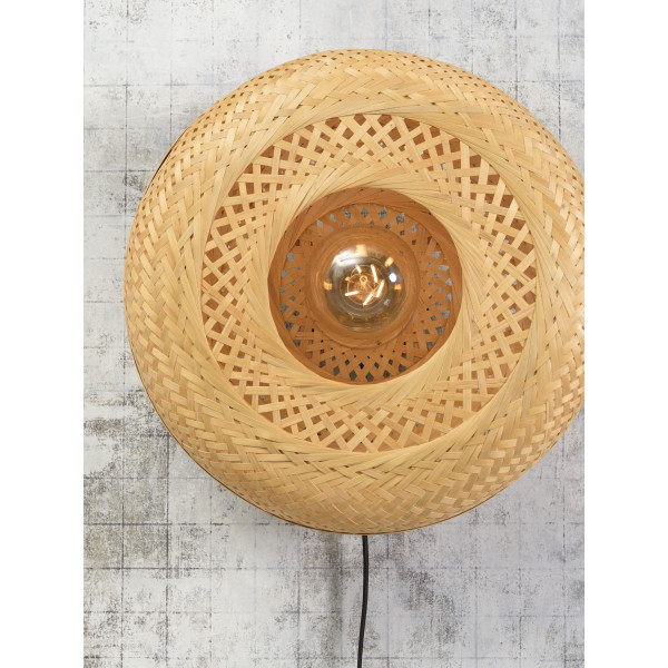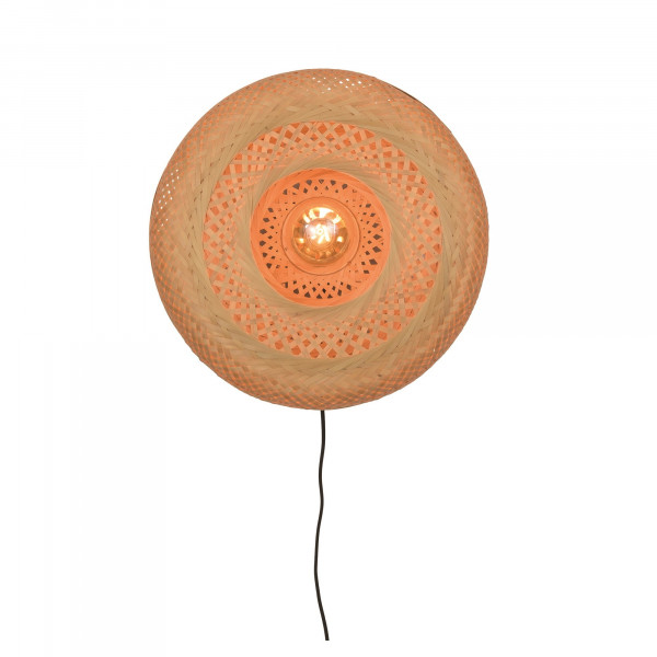 A luz de parede Palawan, combinando ferro e bambu, se encaixa facilmente em uma decoração de interiores. Ela é capaz de trazer um toque de originalidade que irá seduzir os hóspedes. Caracteriza-se por um diâmetro de 40 a 60 cm e um diâmetro de base de 12 cm e uma espessura de 2,5 cm. Esta luminária tem uma base E27 (lâmpada não incluída).