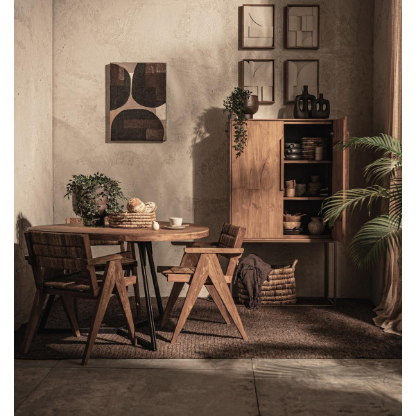 O gabinete Ace ArtWork é uma peça de mobiliário muito elegante, com uma silhueta característica e um impressionante acabamento em madeira, que presta homenagem à arte do artesanato. Esta nova peça da nossa coleção está disponível exclusivamente com nossos parceiros. Ao abrir suas duas portas, você descobrirá três prateleiras para guardar seus pertences e mantê-los fora da vista. Este gabinete é feito à mão em teca e latão recuperados. Ele mede 93,5x45x165 cm.