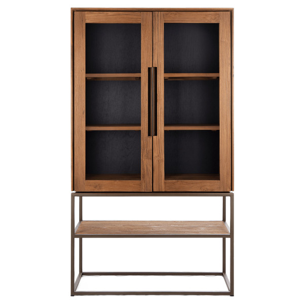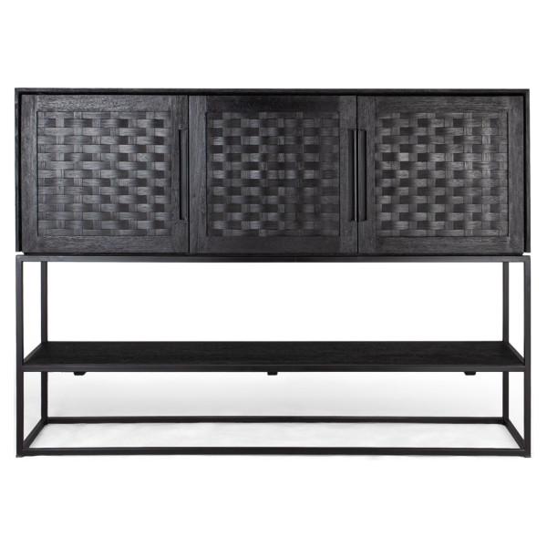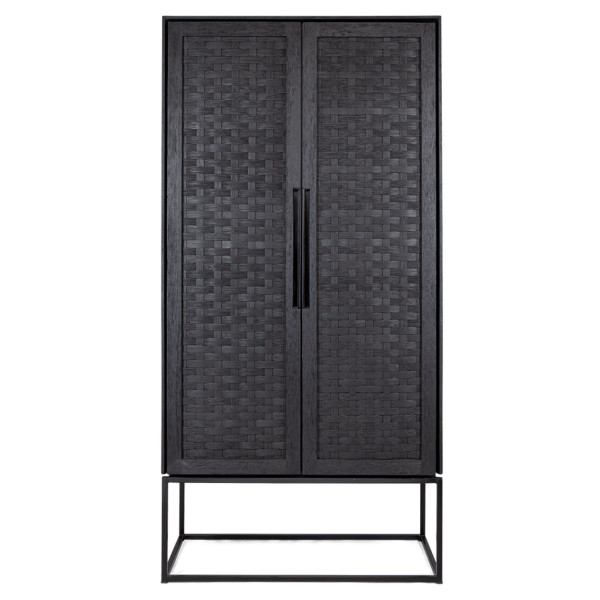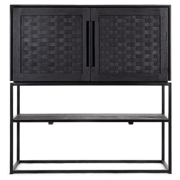 guarda-roupa Karma com 2 portas e 1 prateleira aberta é uma peça de mobiliário elegante que foi projetada usando diferentes técnicas artesanais. É feito à mão em madeira recuperada, tem uma estrutura de ferro moderna e portas duráveis de vime trançado, tratadas com um acabamento preto fosco ecológico. Com portas fechadas e prateleiras abertas, o gabinete Karma não é apenas elegante, mas também ideal para guardar seus objetos de valor.