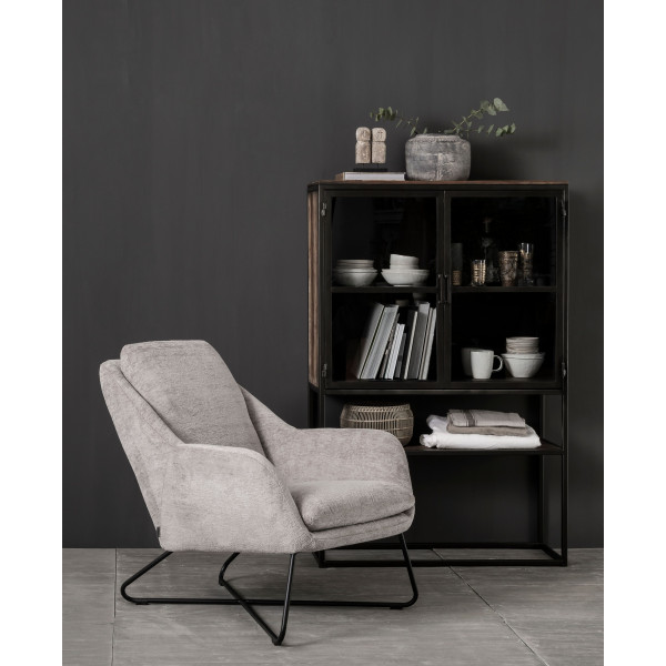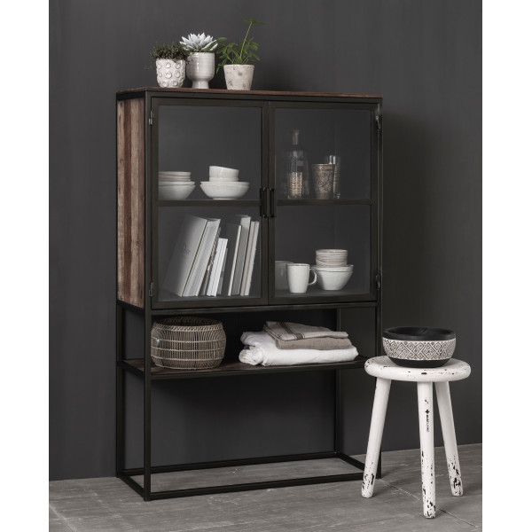 A vitrine Baboon da MUST Living é feita de teca reciclada e possui uma estrutura de metal. As dimensões da vitrine são 90x40x140 cm.