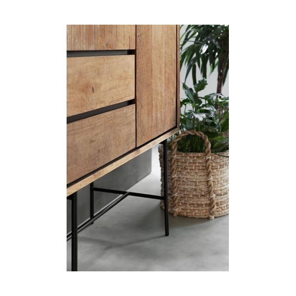 A estante Metropole é feita com madeira de teca reciclada e uma estrutura de metal preto. É perfeito para guardar livros. Graças às duas dimensões disponíveis, a estante de cor natural oferece o máximo espaço de armazenamento.