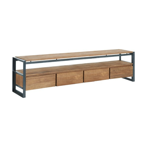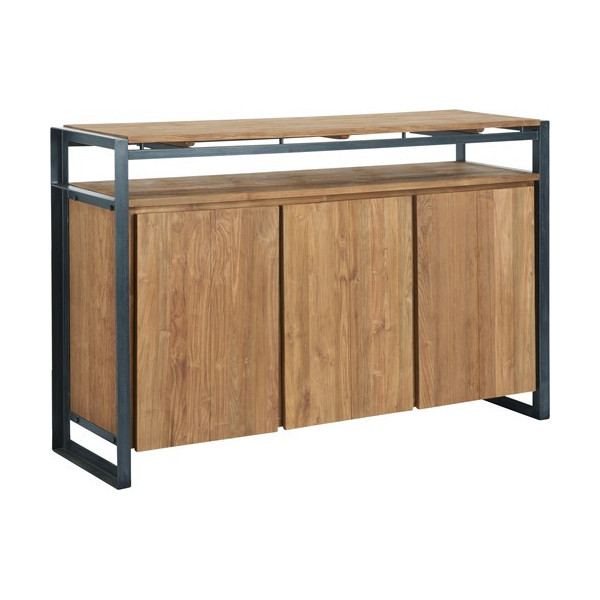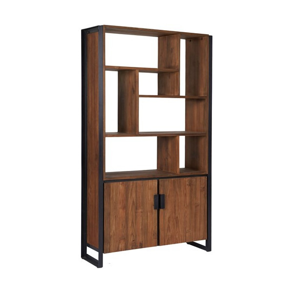 Estante em teca reciclada com estrutura em metal preto