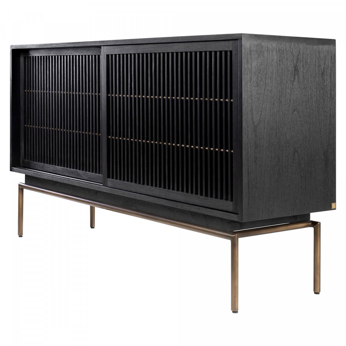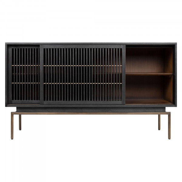 Este aparador Tellem é um acessório de decoração com um design elegante e funcional, ideal como cômoda ou unidade de armazenamento para a sala de jantar ou sala de estar. Esta bela peça de mobiliário é feita de madeira de cedro e aço inoxidável com dimensões de 45x160x90 cm. Está na cor preta e escura.