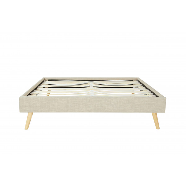 Esta estrutura de cama de estilo escandinavo com pés de madeira permitirá que você dê um novo estilo ao seu espaço de dormir. Está disponível em duas dimensões: 146,5x203x34 cm para colchão de 140x190 cm e 166,5x213x34 cm para colchão de 160x190 cm, e em três cores: cinza claro, cinza escuro e bege natural.