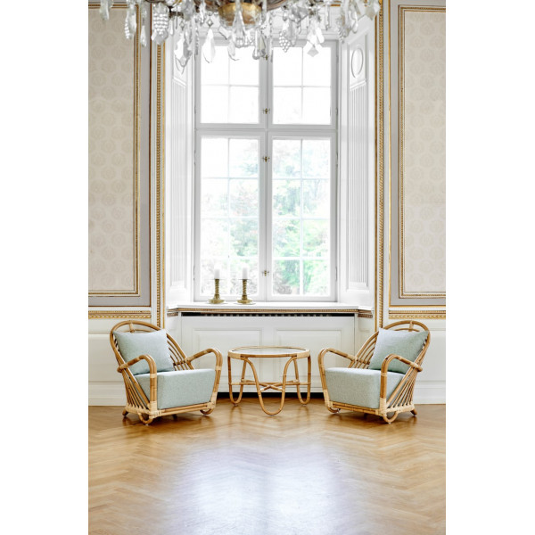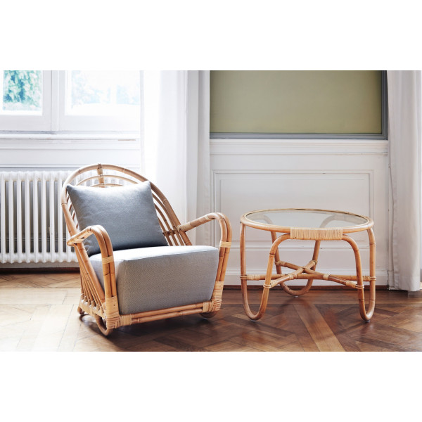 A mesa de centro de vime Charlottenborg faz parte da coleção Icons Sika-Design. Este mobiliário interior é feito inteiramente de rattan natural. A qualidade do rattan usado garante um ajuste interior de alta qualidade. Esta tabela mede Ø69x50 cm.