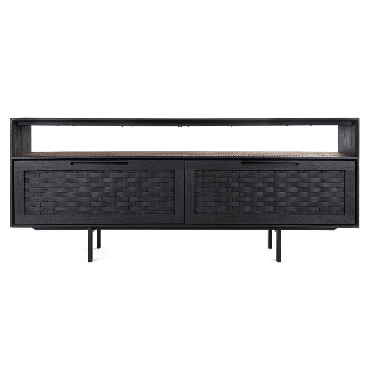 Este suporte de TV Karma com 2 gavetas e 1 prateleira aberta é uma linda peça de mobiliário da nossa coleção Karma. Esta unidade de duas gavetas é feita à mão em madeira recuperada e tem pernas de ferro, bem como gavetas de vime lindamente estruturadas à mão. A posição divertida de seus pés adiciona um toque mais vintage de meados do século ao design. Esta peça de mobiliário é a escolha perfeita para quem quer adicionar um toque de charme e elegância à sua casa.