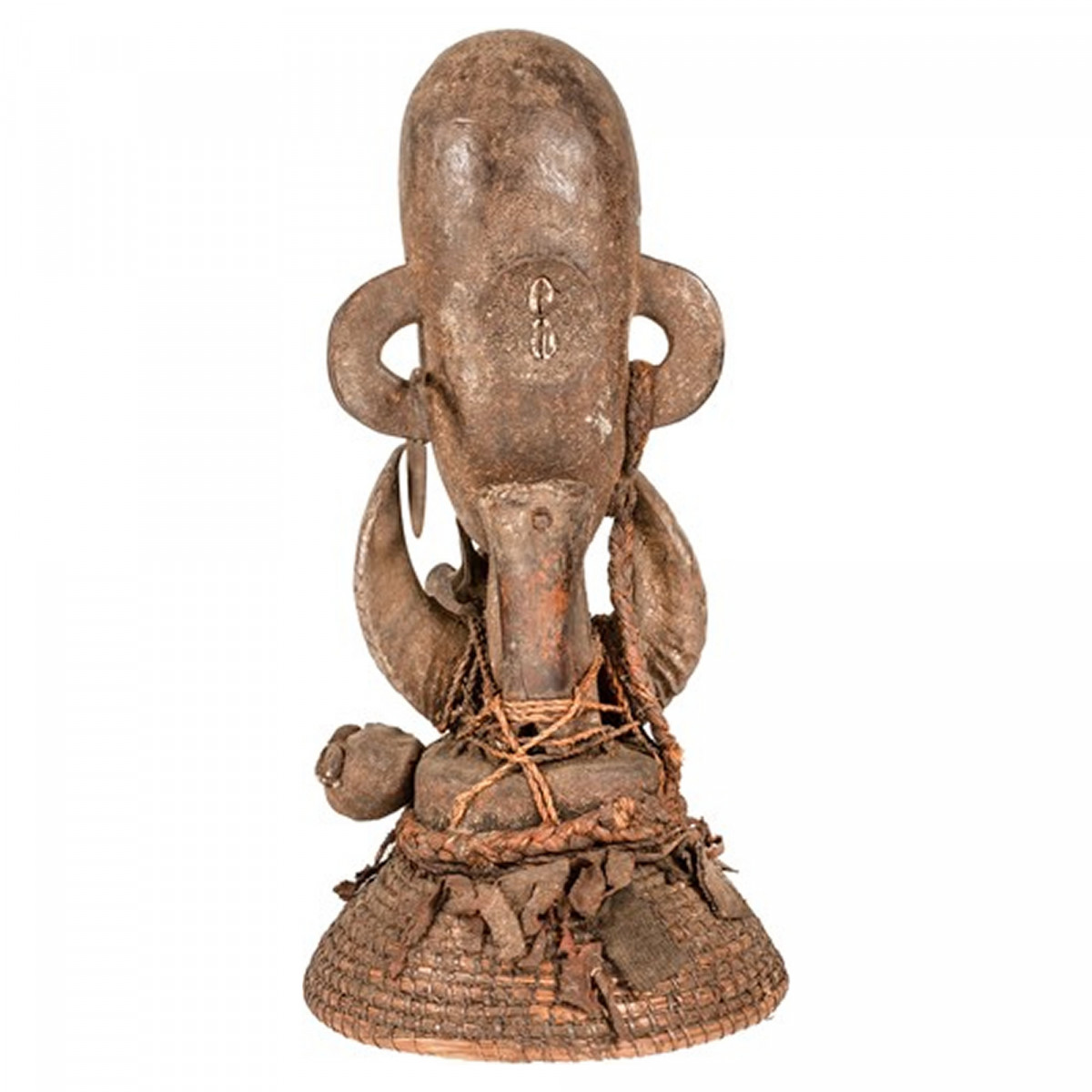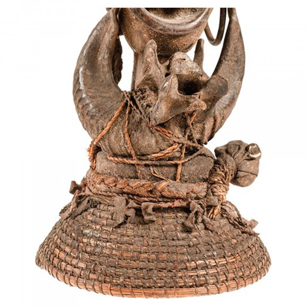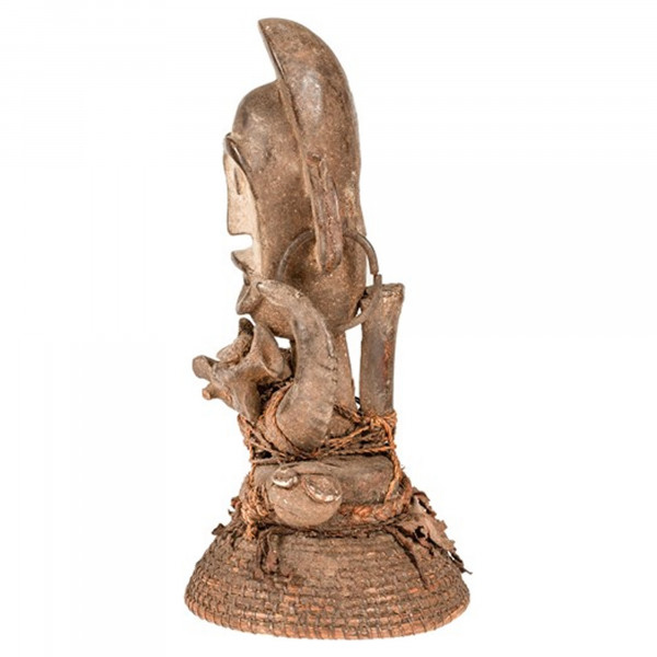 A Máscara de Guerra Versmissen Boa é o acessório perfeito para uma decoração de parede étnica antiga. Este item é único e original graças ao seu acabamento em madeira natural com chifre e osso. A máscara clássica Boa é usada por um feiticeiro na frente das tropas para assustar e fugir dos inimigos. Este produto antigo datado do século XX tem uma dimensão de 22x22x42 cm.