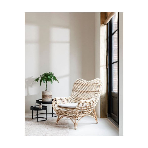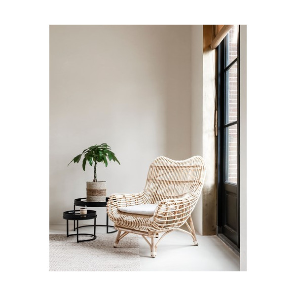 A poltrona MUST Living Cefalu é feita de materiais de vime natural. Ele oferece um encosto e assento confortáveis. A almofada incluída oferece o máximo conforto durante o momento de relaxamento. Tem uma dimensão de 85x103x87 cm. Esta cadeira de cor natural é bonita e elegante.
