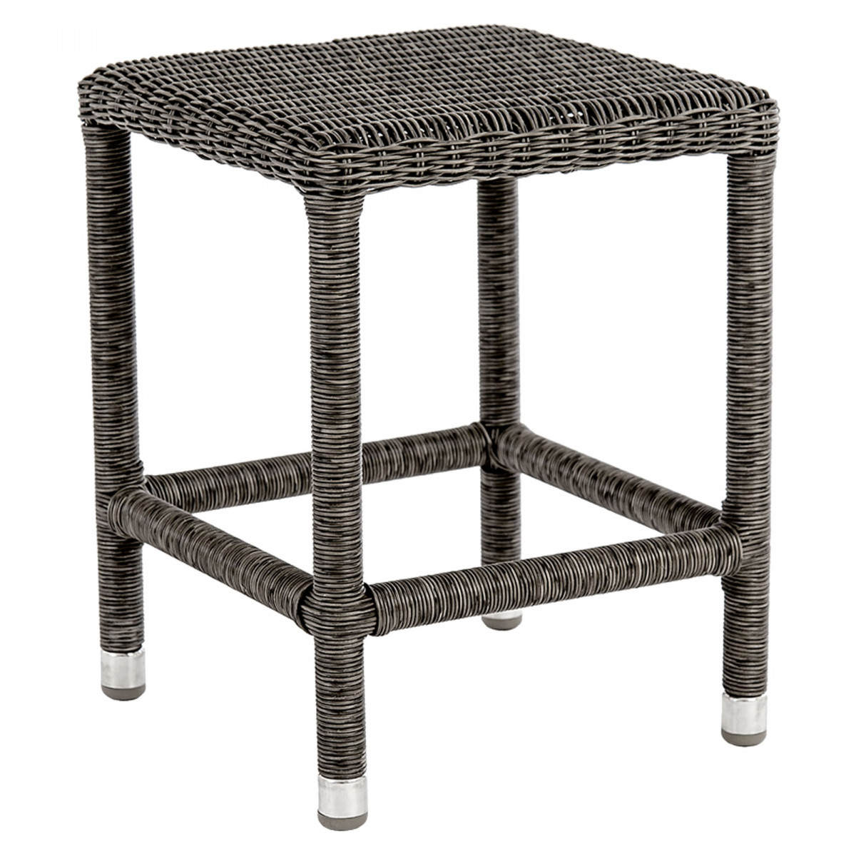 Para completar o mobiliário de jardim ou por dentro, este banquinho cinza antracite garante um mobiliário único. Graças à sua estrutura de alumínio e ao trançado à mão com fibra de viro, este banquinho é forte e resistente. Este móvel tem uma dimensão de 35x35x44 cm.