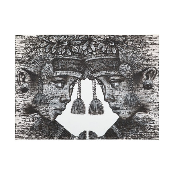 Esta arte de parede de gêmeos balineses da MUST Living expressa um estilo de vida holandês sublime e autêntico. Esta tela retrata gêmeos com roupas tradicionais da ilha indonésia de Bali. Tem um tamanho de 150x100 cm nas cores preto e branco, mas é feito pintando sobre tela “L”. Para adicionar mais decoração à parede, esta decoração de parede é uma arte sedutora para pendurar na sala de estar.