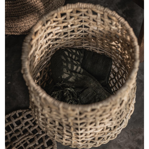 Coșul de rufe Sumbing este un coș țesut manual, cu un capac și o plasă deschisă. Acest coș mare este fabricat din abaca naturală, o fibră puternică și flexibilă care îi conferă o mare rezistență. Cu aspectul său natural, acest coș este un mod frumos de a vă păstra rufele, păstrând în același timp stilul la vedere. Dimensiunea sa este de ø44x55/63 cm.