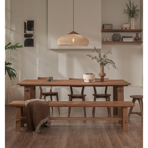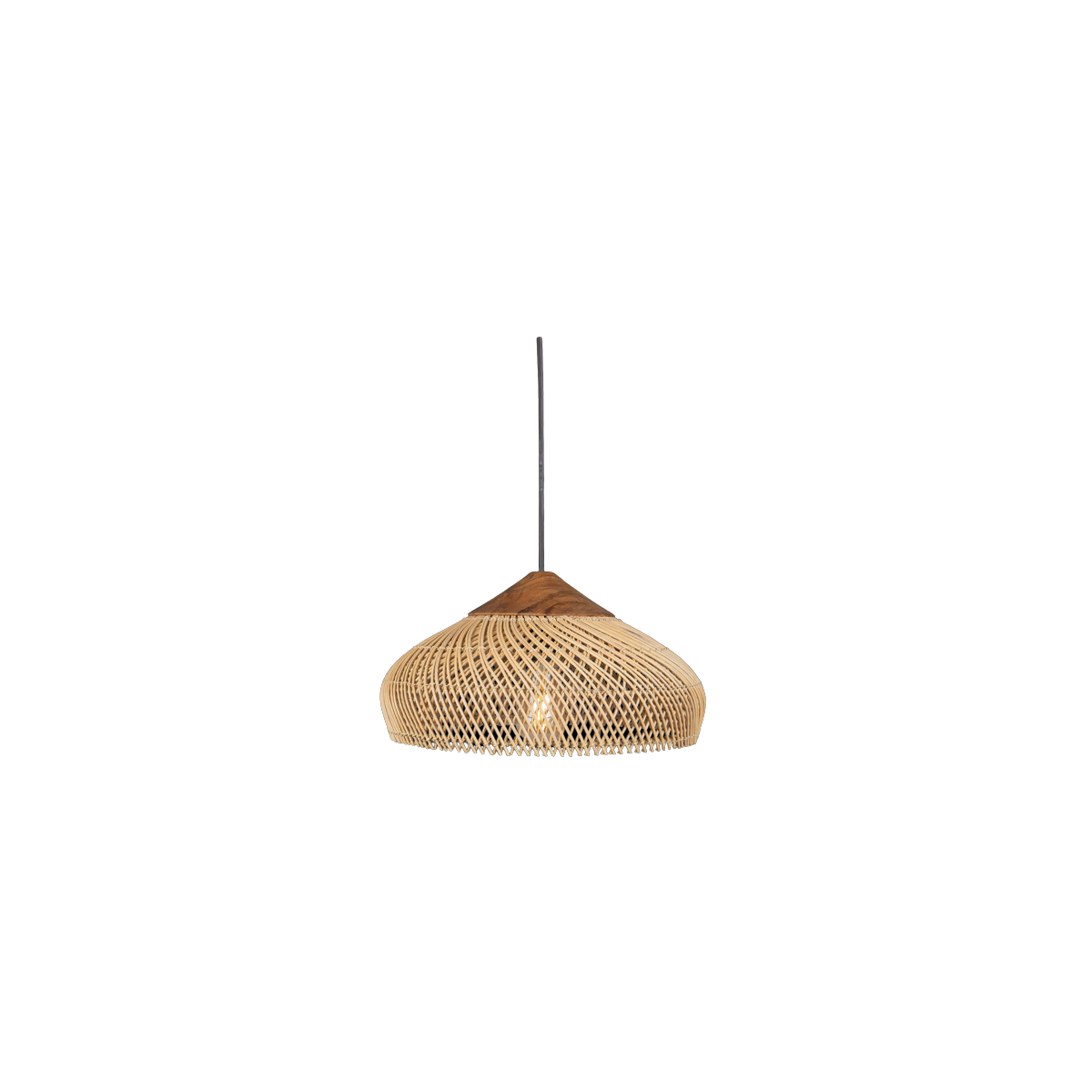 Această lampă suspendată Banjo este o lampă suspendată cu un design clasic revizuit într-un mod natural. Are un top din lemn de tec și detalii din ratan organic țesute manual folosind o tehnică veche javaneză. Disponibil în diferite dimensiuni și într-un finisaj natural sau cărbune, poate fi agățat singur sau într-un cluster prin amestecarea dimensiunilor și formelor. Această lampă va aduce o notă de originalitate și căldură în casa ta.