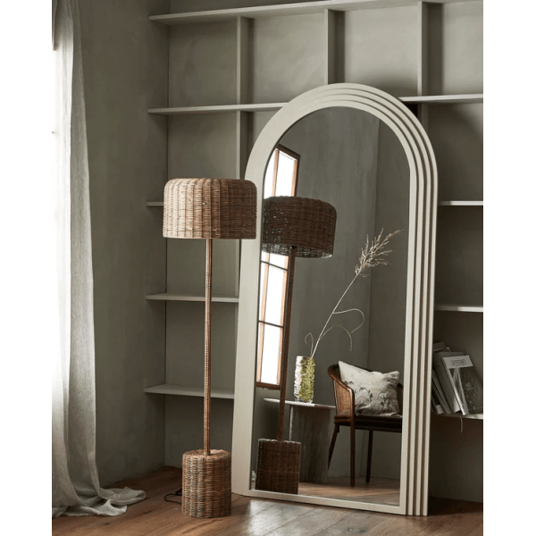 Lampa de podea din ratan Cane are o strălucire naturală și o căldură caldă care se va potrivi cu zona în care este instalată. Este perfect pentru orice cameră din casă, indiferent de dimensiunea sau forma sa. Această lampă este fabricată din material natural. Acesta masoara ø42x152 cm.