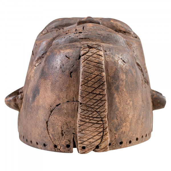 Elementulunic afișat în imagine este elementul exact pe care îl veți primi. Masca Chihongo este versiunea pentru bărbați a măștii Mwana Pwo. Asemănările stilului apar în trăsăturile faciale: fruntea largă rotunjită, marcată cu crucea Sfântului Andrei, ochii pe jumătate închiși și semnele „lacrimilor”, aceeași formă a nasului și a gurii cu dinți ascuțiți subliniați. Masca Chihongo este reprezentarea unui spirit masculin care evocă putere și bogăție. Originar din Angola, a fost făcut din lemn de către tribul Chekwe la mijlocul secolului al XX-lea. Are o înălțime de 32 cm, o lățime de 21 cm și o adâncime de 17 cm.